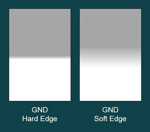 If you’ve investigated Lee’s website, you’ll see that in addition to varying strength, there are also “hard” and “soft” edge GND filters. These are shown below.