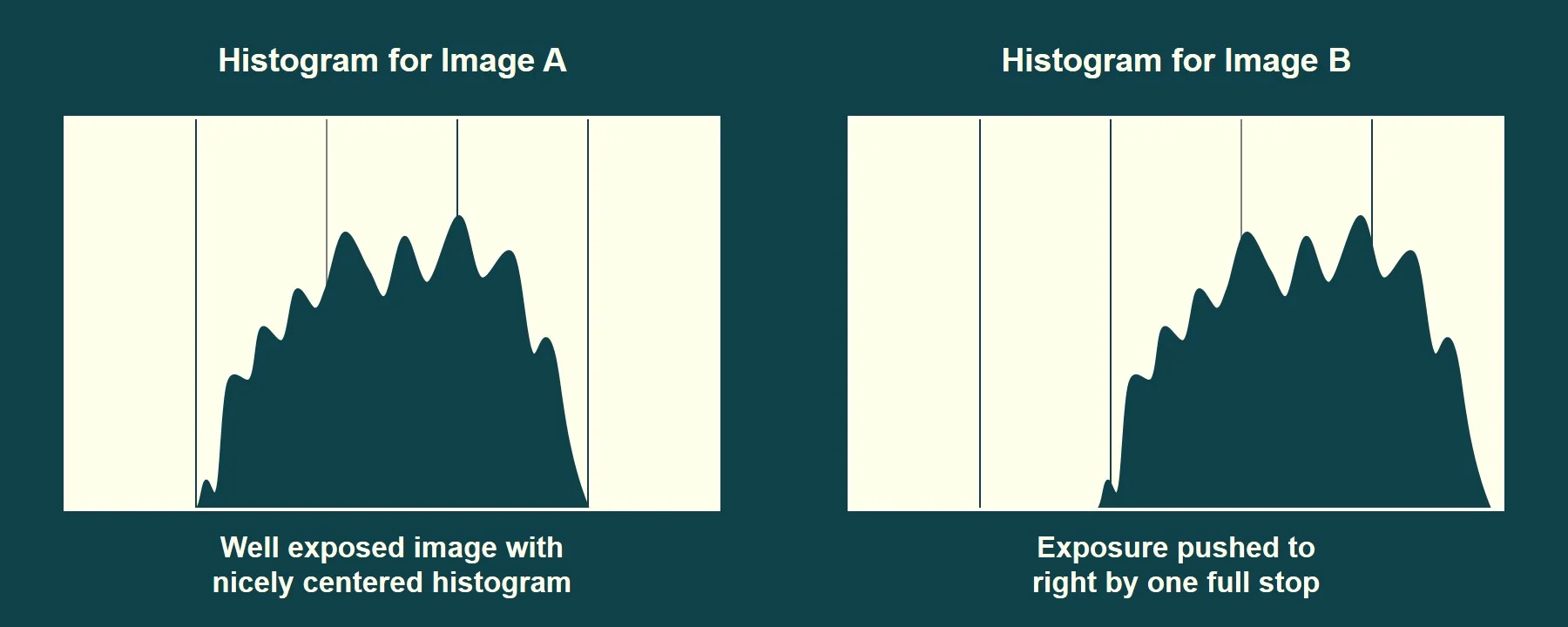 Retake the photo leaving everything the same, except correct your exposure one full stop to the right. Your new histogram for Image B will look something like on the right.