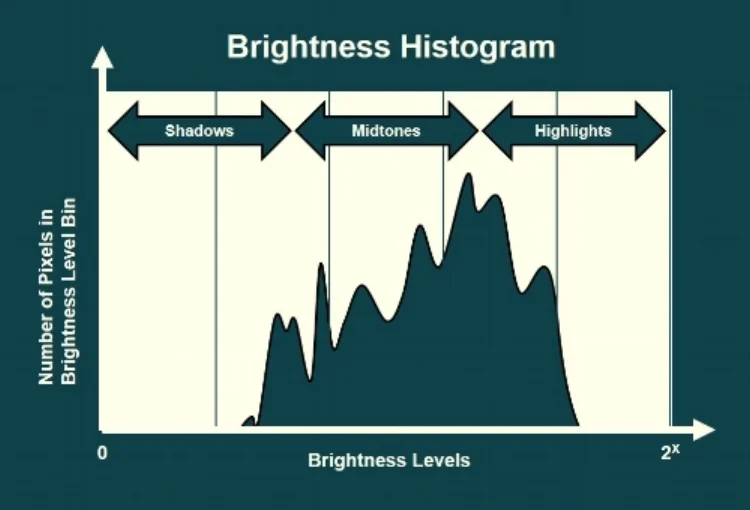 This simple example is completely analogous to the histogram on your camera, but instead of counting the number of ages in each age bin, it counts the number of pixels having brightness values ranging from the darkest of dark tones to the lightest of light tones.
